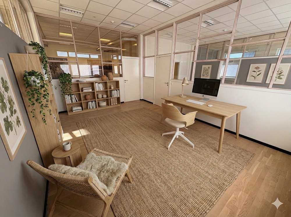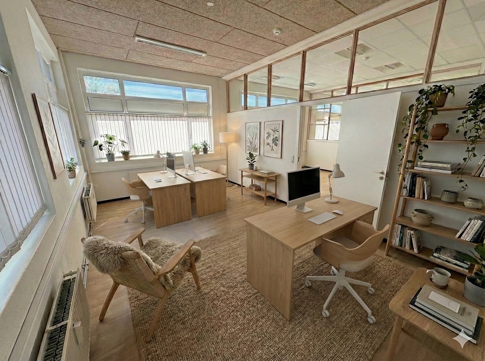 Lejemålet på de 72 m² er indrettet med trægulve og lyse vægge og. Kontoret ligger i vores kontorfællesskab “VÆKSTVÆRKET” på 2. sal lige ved siden af tilgængelig elevator. Fællesområdet er indrettet med indbydende storrum til fælles afbenyttelse, mødelokale, toiletter samt stort fælles køkken. Kontorfællesskabet deles i dag med tre andre virksomheder.