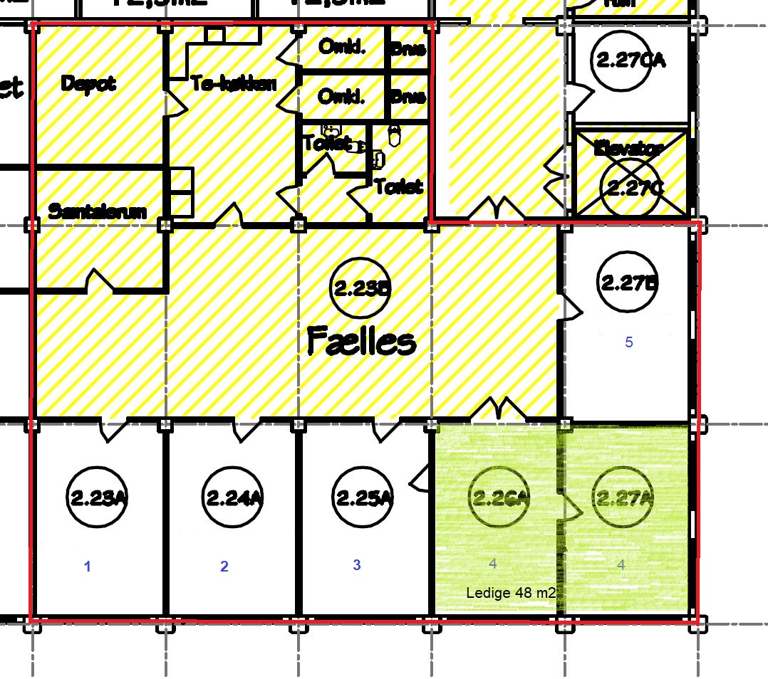 Kontoret er en del af kontorfællesskabet VÆKSTVÆRKET på Glasværkets 2. sal, hvor der er nem adgang via elevator. Her får du ikke kun dit eget kontor, men også adgang til inspirerende fællesfaciliteter: